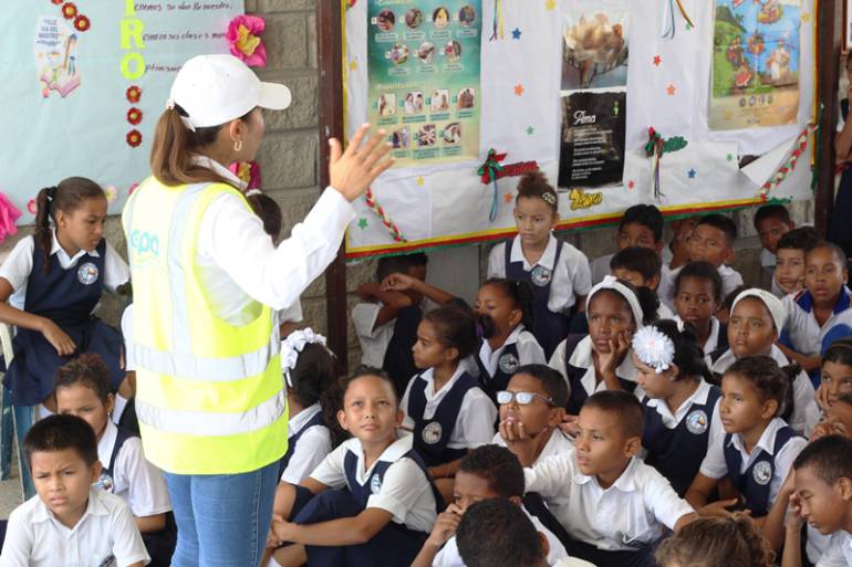 La primera parte de la jornada pedagógica se hizo con estudiantes de la IE República de Argentina, a quienes se les dio una charla sobre este animal, y el por qué busca aguas tranquilas como caños y humedales para esta temporada.