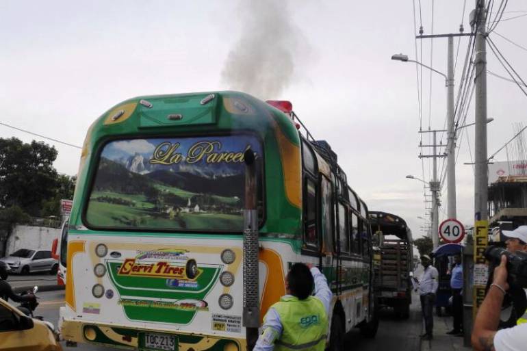 Nuevamente operativos de control a la contaminación atmosférica realizados por el Epa Cartagena, con el apoyo del Datt, la Policía Nacional, originaron la sanción a varios vehículos de servicio público.