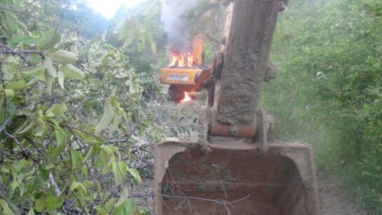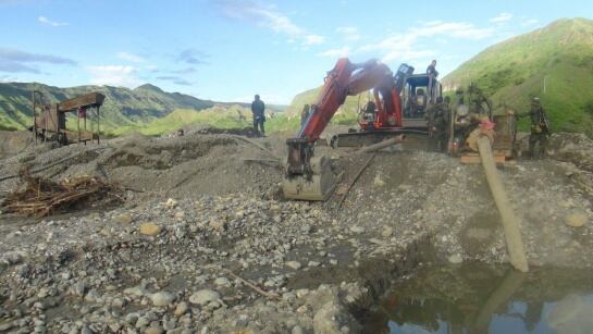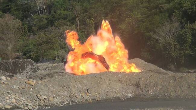 La Policía destruyó nueve retroexcavadoras y nueve motores utilizados para la extracción ilegal de oro.