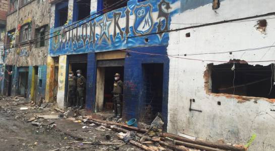 Hoy la zona está acordonada son tres cuadras en total donde se vivía el infierno, camiones salen llenos del lugar de escombros, máquinas tragamonedas, camas y todo lo que existía en este lugar.