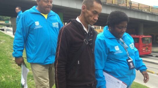 Es un trabajo difícil pero no desisten y llegan del puente de la Calle 26 con Séptima donde hay tres habitantes durmiendo encima de tablas con cartones encima. Es el tercer intento y se logra convencer al primero habitante de calle, agradece la ayuda y los acompaña. Tratan de convencer a dos más uno dice que mañana asistirá al centro transitorio, el otro se niega.