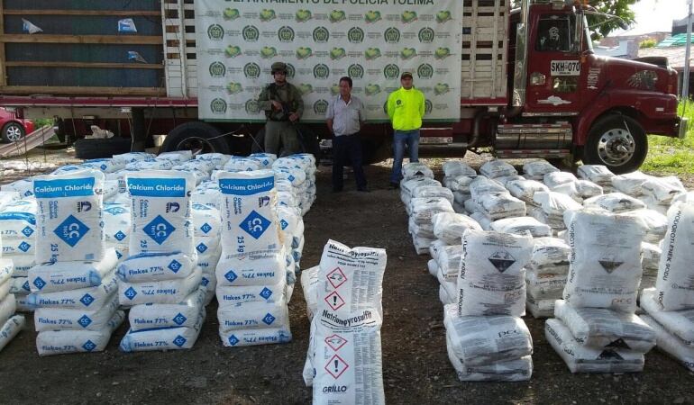 Un retén instalado por la Policía permitió la incautación de 8.000 kilos de insumos químicos para el procesamiento de alcaloides. La acción de las autoridades se cumplió en la vía Espinal - Flandes donde se logró detener la marcha de un tractocamión donde se movilizaba el cargamento representado en cloruro de calcio, soda caustica y metabisulfito de sodio, elementos fundamentales para la elaboración de sustancias sicoactivas.