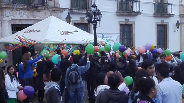 Se explotaron en el centro de Tunja mil globos de colores que estuvieron marcados con temas alusivos a la vida, consigna con la que los jóvenes boyacenses quieren que se bombardee a su capital.