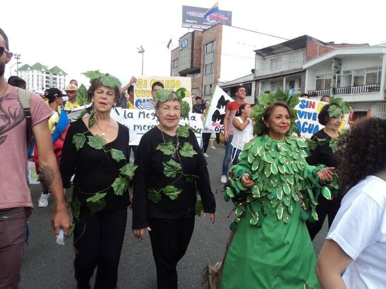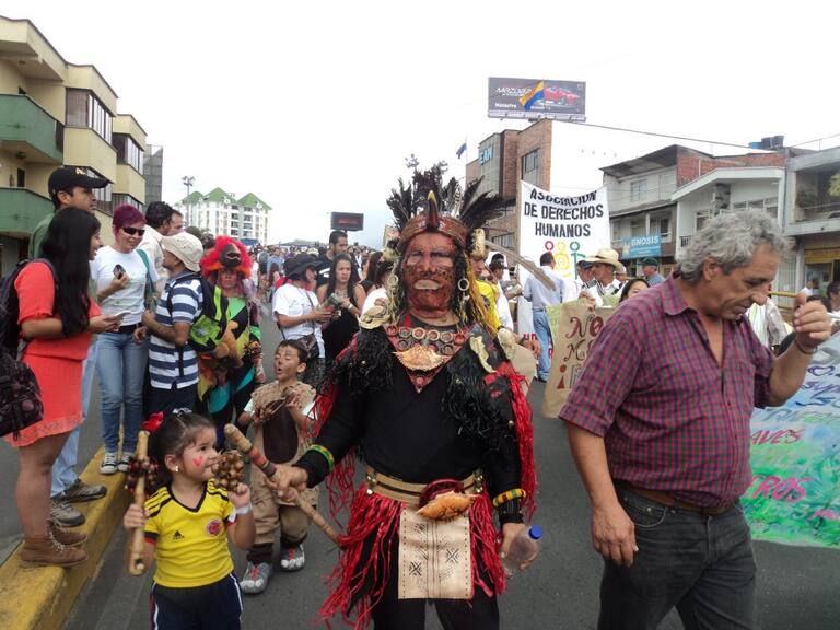 Con disfraces de los personajes ancestrales quindianos le dijeron no a la mega minería