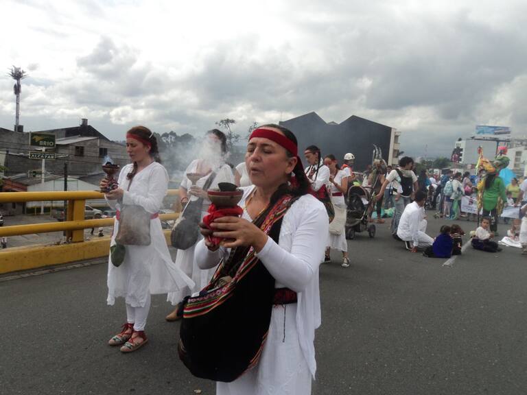 Con cantos, oraciones e Incienso a la pachamama, las mujeres lideraban la marcha carnaval por la vida