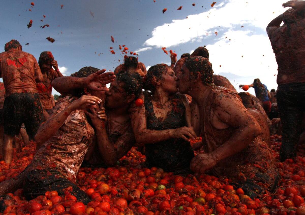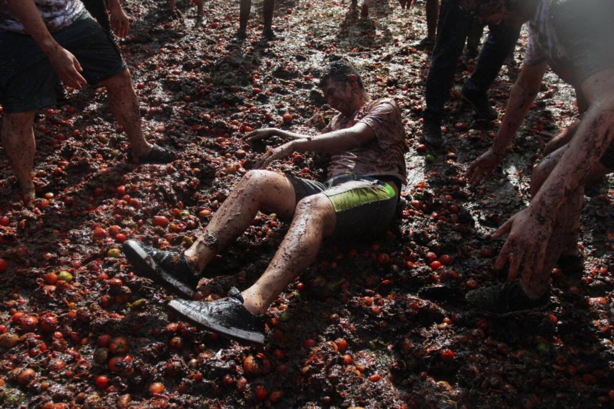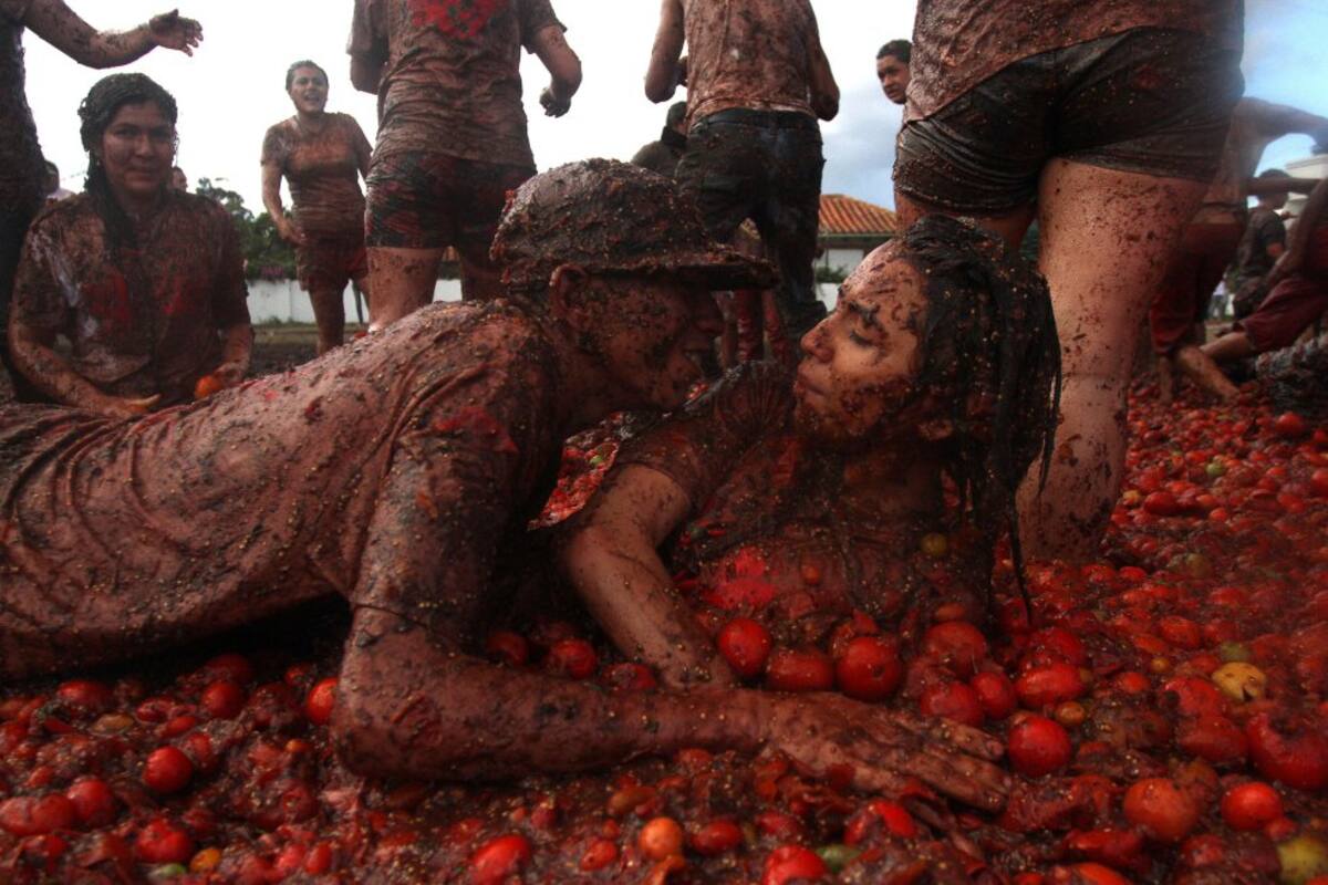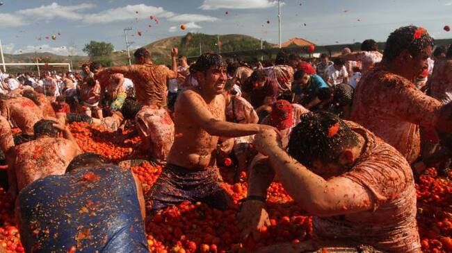 La población boyacense se tiñó de rojo en una batalla campal de tomates