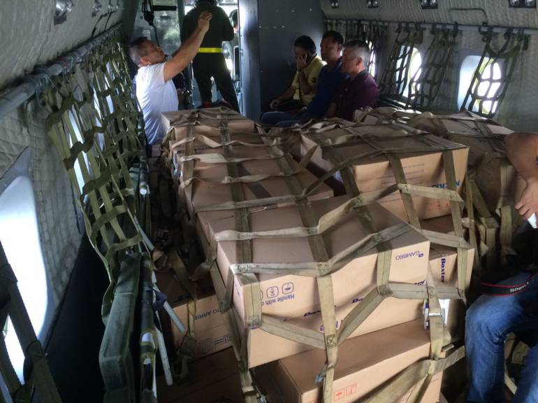 Un avión de la Fuerza Aérea transportó una tonelada y media más de medicamentos para suplir las necesidades básicas de hospitales y centros médicos.