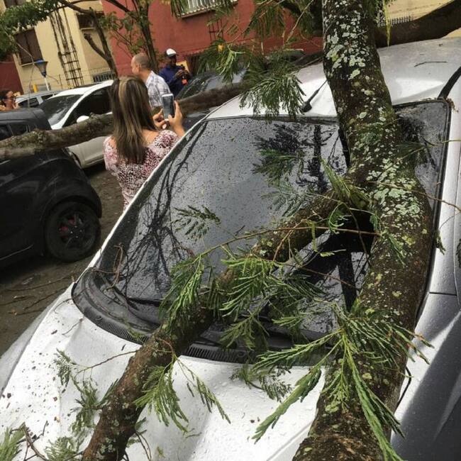 Uno de los techos que colapsaron se registró en la carrera 94 con segunda, barrio Melendez, el cual cae sobre lineas energéticas y sobre un árbol, sin causar personas lesionadas.