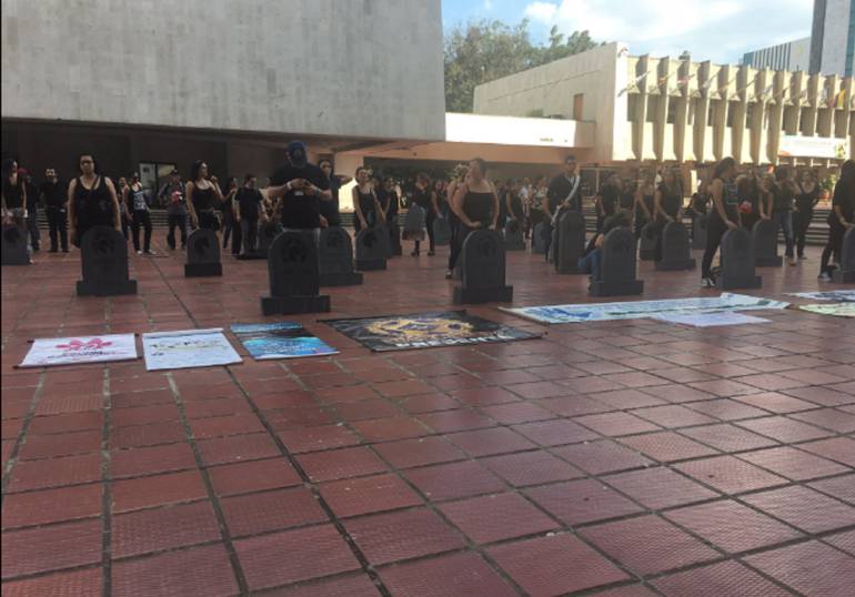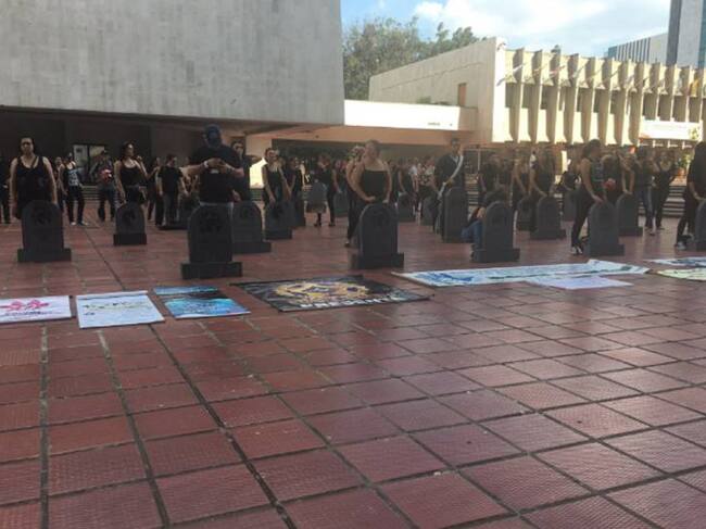 Vestidos de negro en señal de duelo, con pitos, pancartas y lápidas mortuorias que representaban los 50 caballos muertos en los últimos años, organizaciones animalistas hicieron un plantón frente a la administración municipal para exigir que los vehículos de tracción animal salgan de las calles de Cali.