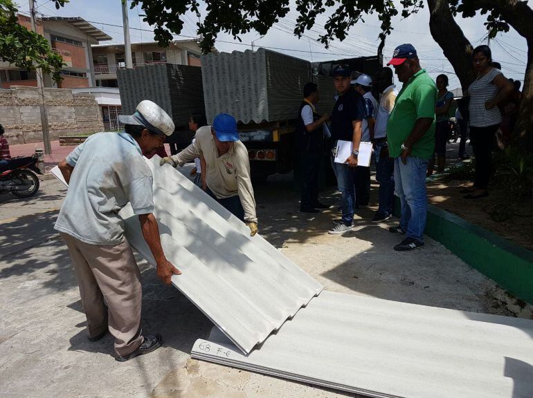 Indica el comunicado que hasta el jueves habían entregado 1779 láminas para techo, 75 caballetes y 1800 bloques.