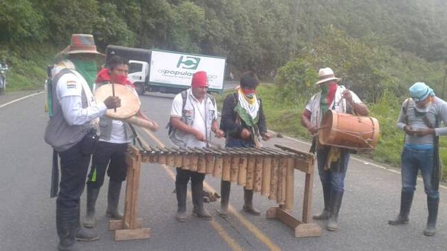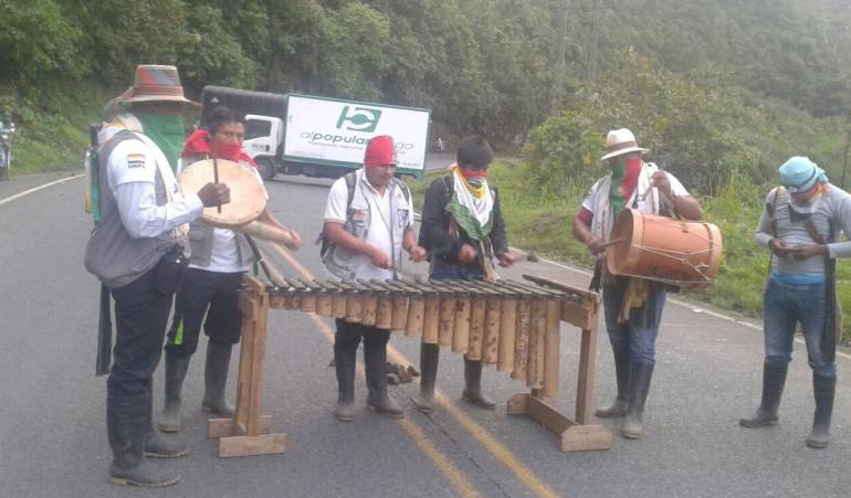 En este momento loa manifestantes están desarrollando lo que denominan una toma cultural están en la mitad de la vía con instrumentos musicales como marimbas interrumpiendo el paso de los vehículos de carga y pasajeros.