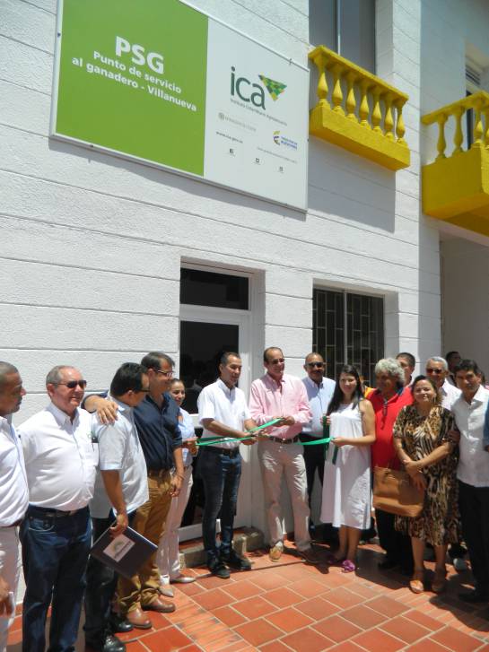 El gerente general del Instituto Colombiano Agropecuario ICA, Luis Humberto Martínez Lacouture, acompañado del alcalde de Villanueva, Luis Alberto Baquero Daza, pusieron al servicio de los ganaderos de 4 municipios de La Guajira, el nuevo Punto de Servicio al Ganadero PSG, el cual concentra y agiliza los trámites que deben realizar los usuarios en la movilización y comercialización de ganado y otros productos en esta región del país.