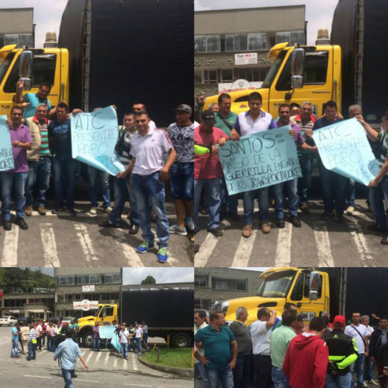 Con carteles que dicen "Santos amigo de la guerrilla, enemigo de los transportadores" lo manifestantes se hicieron sentir.