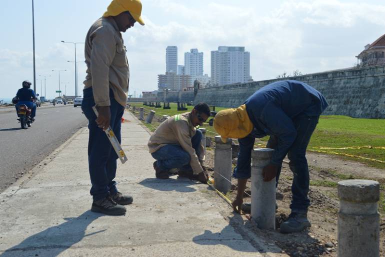 Garantizar el derecho de cartageneros y visitantes a apreciar y disfrutar sin obstáculos el patrimonio fortificado de Cartagena es lo que busca la Escuela Taller Cartagena de Indias ETCAR mediante la instalación de bolardos en las zonas verdes contiguas a las murallas del Centro Histórico de la ciudad.