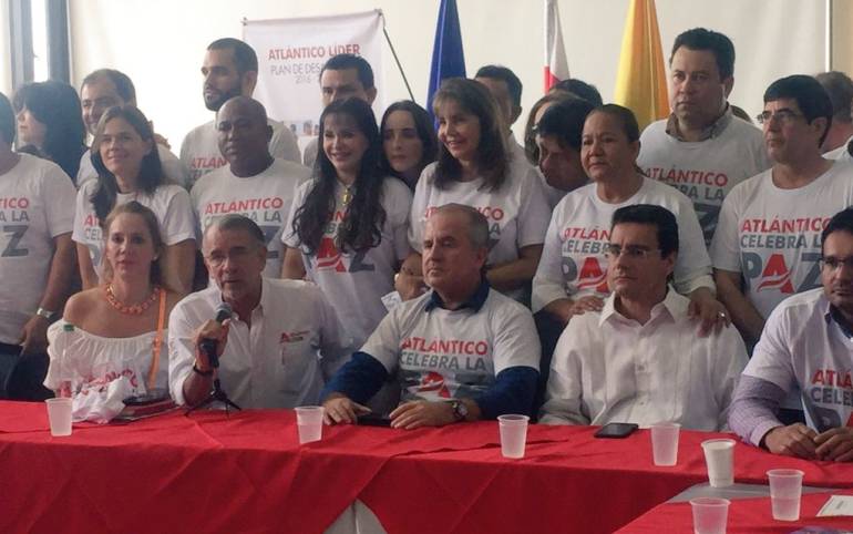 En un acto simbólico en el salón de eventos de la gobernación del Atlántico, los 14 diputados, el gobernador Eduardo Verano y los funcionarios de la Administración departamental se unieron en una sola voz de respaldo lo pactado en la ciudad de La Habana en torno al cese bilateral del fuego y la dejación de armas por parte de la guerrilla.