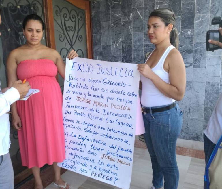 Botero realizó un plantón en la sede de la Defensoría del Pueblo en Cartagena para exigir justicia en este hecho violento.