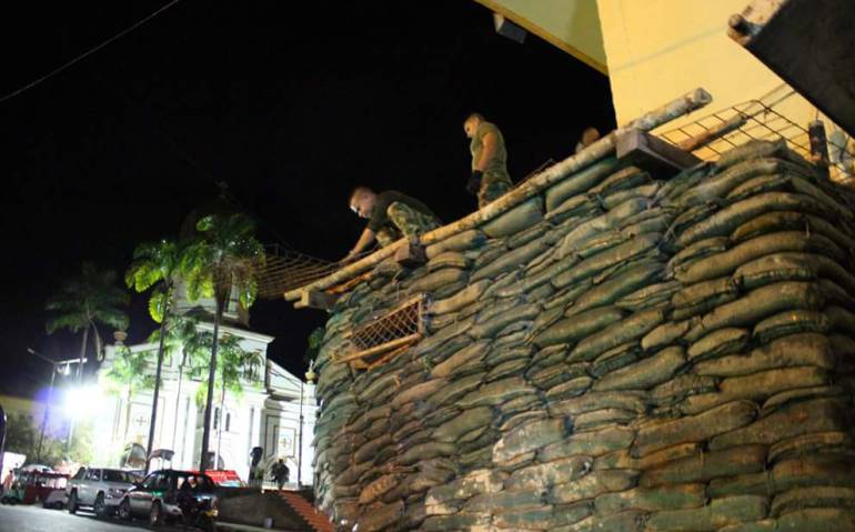 Polémica: En Ituango el Ejército volvió a montar trincheras en el parque principal