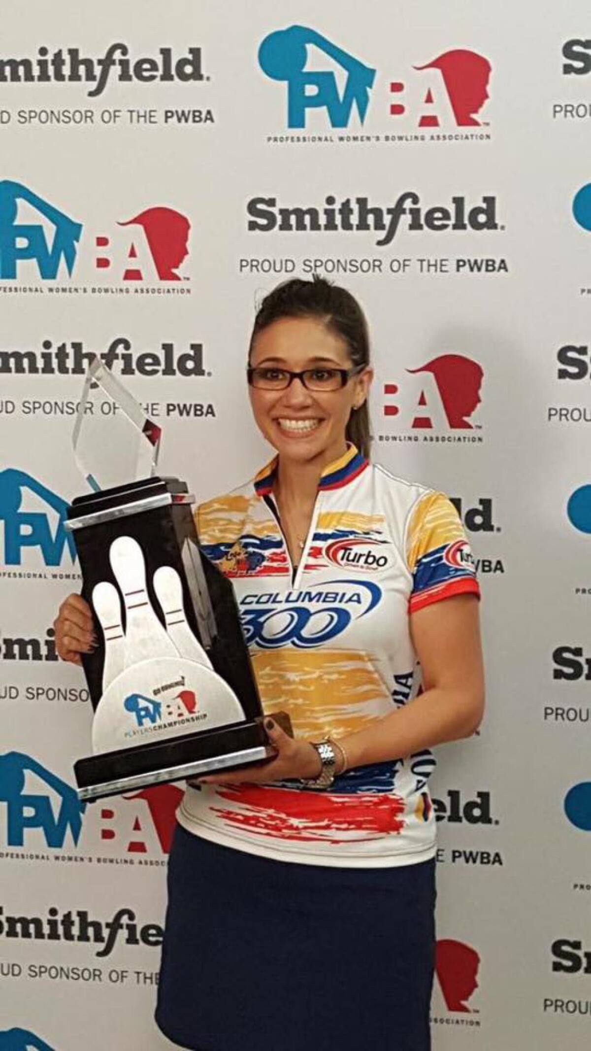 En Wisconsin la bolichera quindiana presenta el trofeo como ganadora