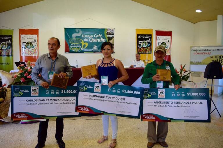Los tres finalistas recibieron el premio por producir el mejor café del Quindío