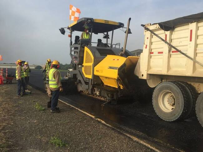 El inicio de las obras se hizo en el lado aire con los trabajos de pavimentación de la pista, que se están ejecutando en un tramo de prueba de 540 metros lineales en una de las calles de rodaje. En esta zona fue aplicada una capa de asfalto caucho de 5 centímetros de espesor, según se explicó.