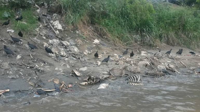 Un sorprendente y preocupante hallazgo realizó la CVC, tras desarrollar un operativo de monitoreo por la ribera del río Cauca, entre Juanchito y Cali, al encontrar en algunos sectores osamenta y vísceras de caballo.