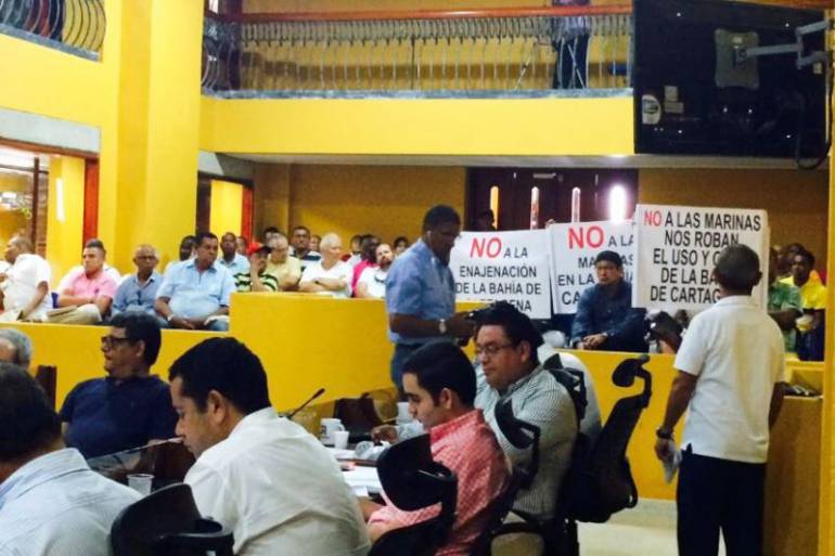 Con la presencia de representantes de la Dirección General Marítima, la Secretaría de Planeación del distrito, la directora del EPA, delegados de la oficina asesora jurídica y de la Secretaría del Interior, y vecinos de Manga, Bocagrande, Castillogrande, El Laguito y Barú, se llevó a cabo hoy en el Concejo Distrital un debate de control político mediante el cual las bancadas de Cambio Radical, La U, Conservadora y Opción Ciudadana, buscaban revisar la legalidad y conveniencia de las nuevas marinas que están en trámite y la presunta contaminación a la Bahía, originada por sustancias aceitosas que provienen de las embarcaciones y obras de dragado.