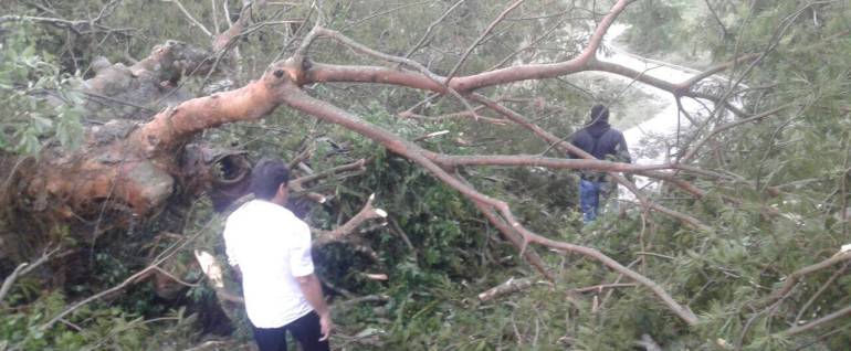 Fredy Morales, habitante de la primera de las poblaciones informó que el aguacero destechó una decena de casas y derribó árboles en sectores como el parque principal.