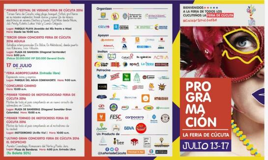 La feria de Cúcuta promovida por el alcalde Cesar Rojas tiene festival deportivo, desfile de modas, actividades clturales y artesanales al aire libre, festival de danzas, desfile de reinas, feria agropecuaria, teatro, conciertos, festival de la cerveza, festival de verano, entre otros para que se logre la integración del público en las diferentes actividades.