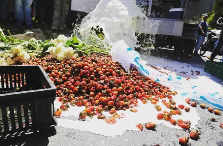 El Alcalde de La Unión, Valle, reveló que el paro está colocando en riesgo el empleo de tres mil 600 personas, ya que la fruta se está regalando y botando en potreros.
