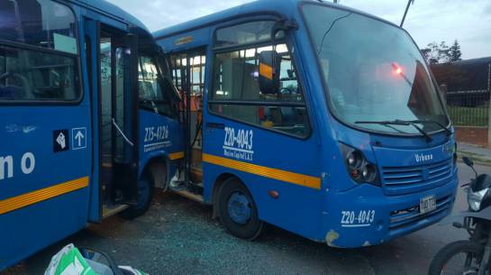 En la Calle 22 sur con Carrera Tercera este, en la localidad de San Cristóbal en el sur de Bogotá, chocaron dos buses del Sistema Integrado de Transporte Público.