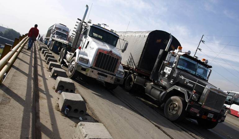 Transportadores que participan del paro camionero se concentran en dos puntos de la capital del país para movilizarse luego hacia la Plaza de Bolívar como parte de la protesta.
