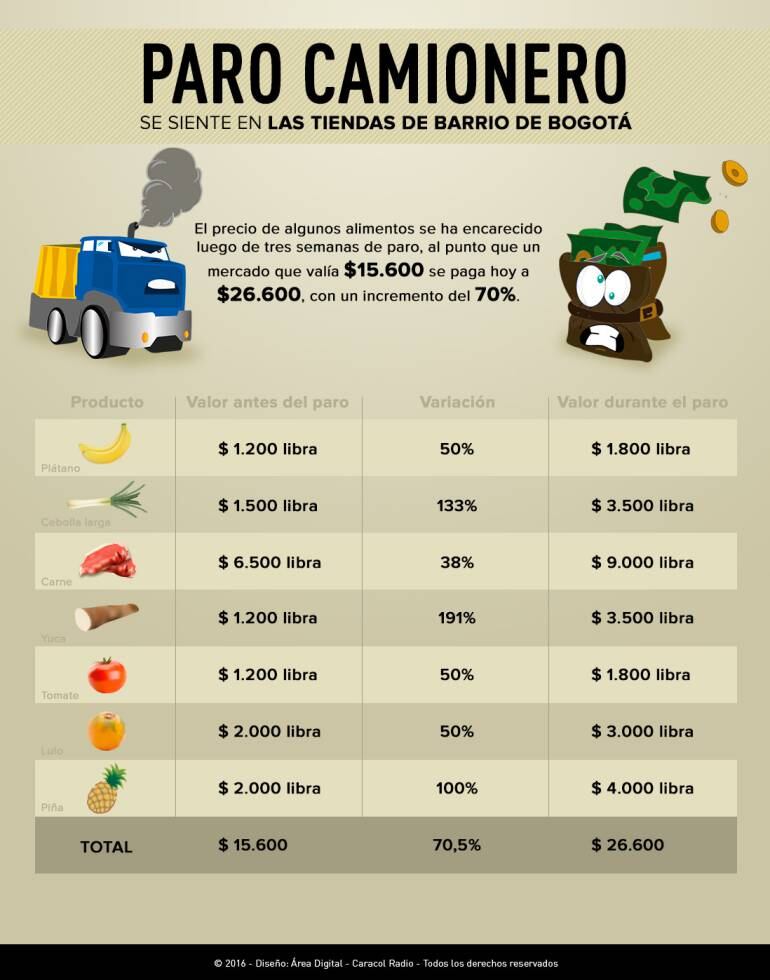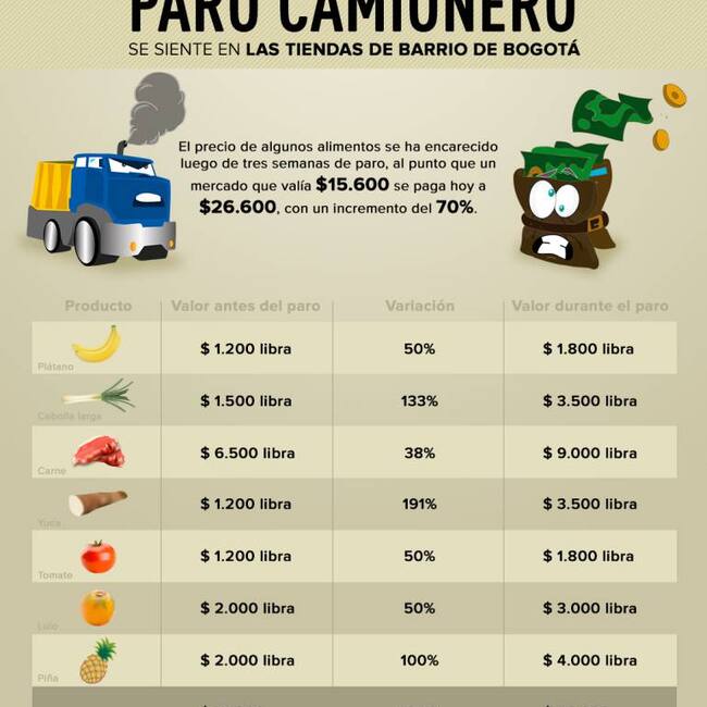 Así subió el precio de los alimentos en Bogotá por paro camionero