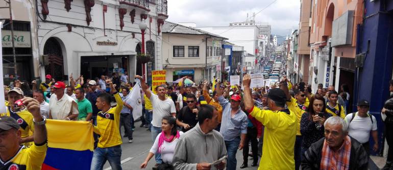 Camioneros, volqueteros, taxistas, transportadores escolares, centrales obreras y hasta empleados de los bancos se volcaron esta mañana a la avenida Santander de Manizales para marchar en contra de las políticas del presidente Juan Manuel Santos y hasta de sus jefes inmediatos.