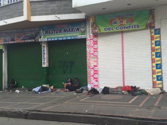 Hoy el panorama es de 30 habitantes de calle pero por cada cuadra, a lo largo de cuatro que tiene la Avenida Simón Bolívar. Allí amanecen en medio de la lluvia, de la droga y de basura, porque, y también este ha sido el problema, recolectan los desechos que luego dejan tirados en plena vía pública.
