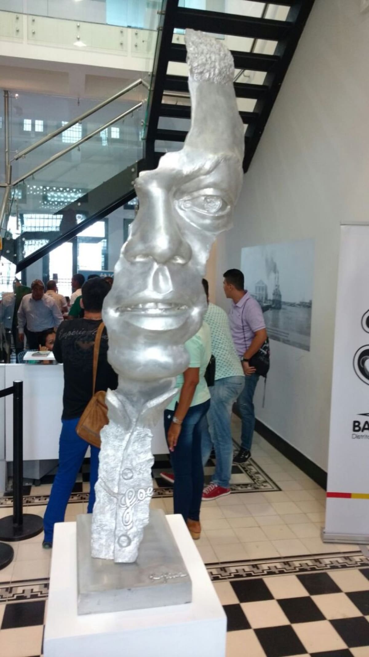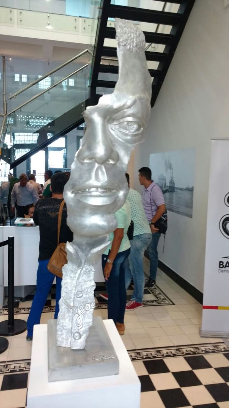 • Un rasgado de la silueta del músico cartagenero da la bienvenida a los visitantes a la exposición.