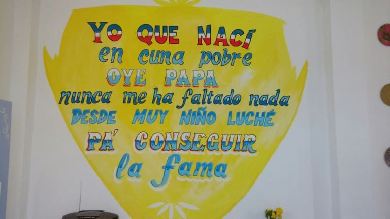 • Mural con las frases de las canciones más cantadas por los seguidores de 'centurión de la noche'.