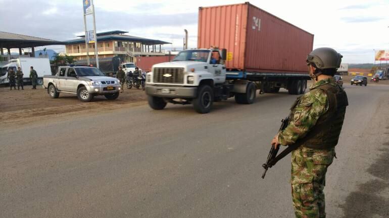 Un total de 150 hombres de la Armada Nacional se han desplegados en toda la jurisdicción del Distrito de Buenaventura, para garantizar la seguridad de los trasportadores durante su recorrido, logrando que mil 248 camiones transporten más de 20 toneladas de carga represada en el puerto de Buenaventura.