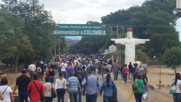 Miles de personas atraviesan la frontera para hacer compras en la frontera. Algunos entre lágrimas se asombran por el buen trato que les ofrecen en Colombia. Las autoridades disponen de transporte gratuito para trasladarlos desde la frontera hasta Cúcuta.