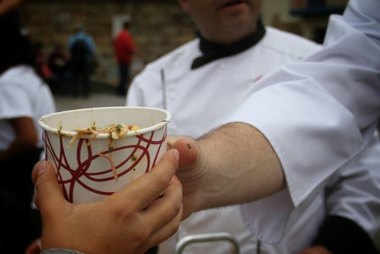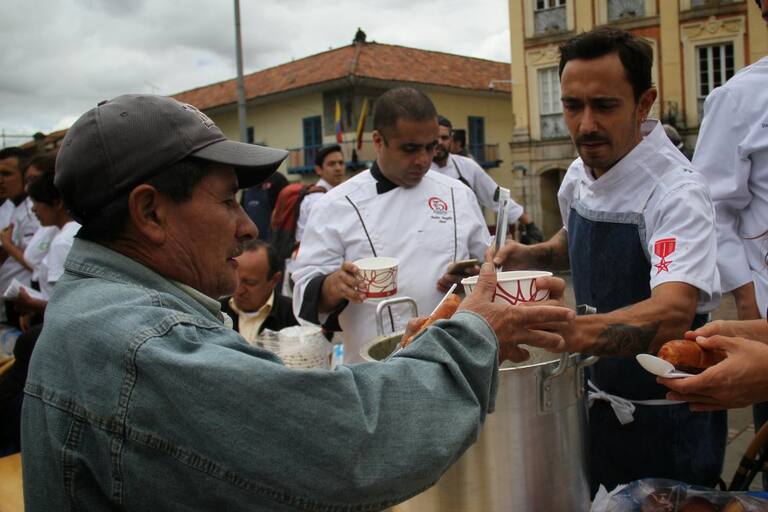 "Lo que hoy estábamos diciendo también es que con recursos muy razonables se puede alimentar mucha gente de forma nutritiva, rica y bien", señaló por su parte a Efe el chef Eduardo Martínez, quien acompañado por alumnos de la Escuela Taller lideró la "toma" de la tradicional Plaza de Bolívar, en pleno corazón de Bogotá.