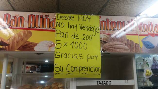 “El pan de $200 lo vamos a vender a $500, los seis panes que dábamos por $1.000 no va más, estamos pensando en tres panes por $1.000” estos son algunos de los nuevos precios que tendrán los usuarios en medio del desabastecimiento de los materiales para la elaboración de este alimento.