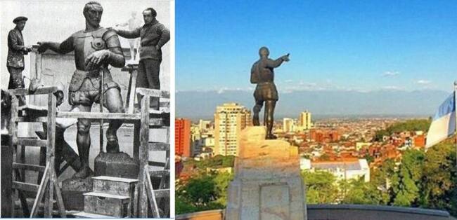 Victor Macho, escultor español en 1937 antes de instalar su obra "Sebastián de Belalcazar"
