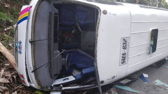 “Según nos informan el vehículo se quedó sin frenos, el conductor maniobró y chocó el bus contra el barranco para evitar que se fuera hacia el abismo, sin embargo se presentó un volcamiento sobre la misma vía que fue atendido por los organismos de socorro de Génova que actuaron de inmediato ”, dijo Mosquera.