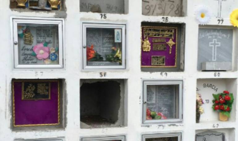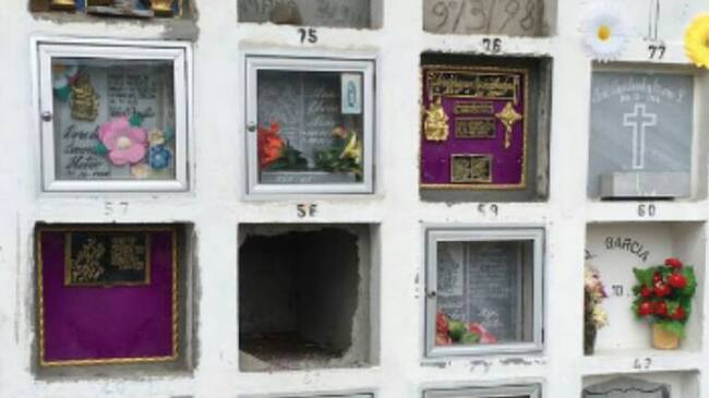 El hombre rompió la bóveda y sustrajo los restos. Los empacó en una bolsa negra y huyó del lugar.
