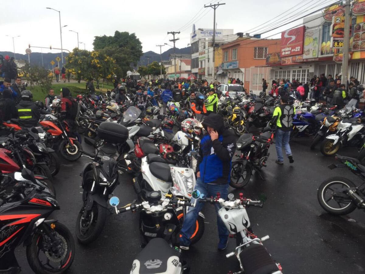 Los motociclistas aplican la operación tortuga en las principales vías de Bogotá desde horas de la madrugada