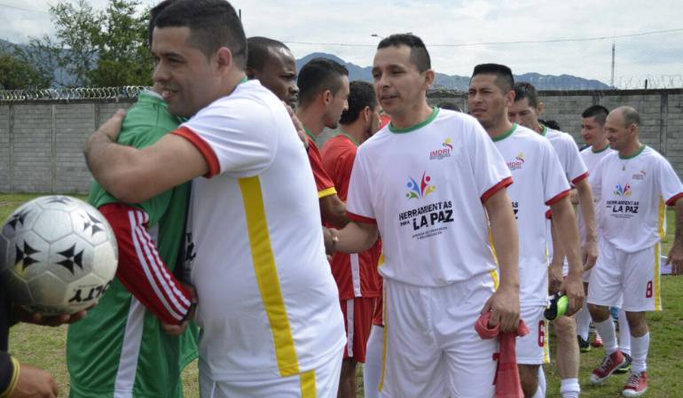 Ex integrantes de las Autodefensas Unidas de Colombia y de los grupos insurgentes como las Farc y el Ejército de Liberación Nacional, Eln, que actualmente se encuentran recluidos en la cárcel de Picaleña de Ibagué cumpliendo sus condenas, se enfrentaron en un partido fútbol como un gesto de reconciliación y paz.