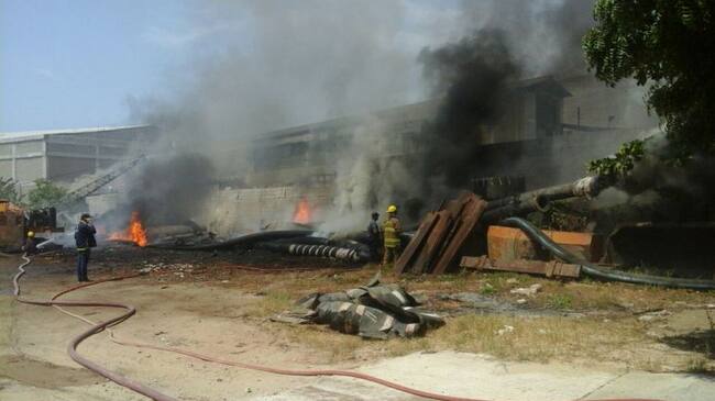 El incendio se registró en la empresa Dragados Sellos & Soluciones, ubicada en el sector industrial de la Vía 40 en Barranquilla.