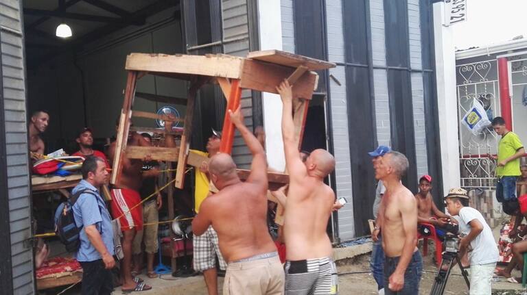 Los migrantes están asinados en una bodega en el secto del Muelle en Turbo.