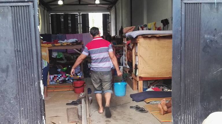 Son cientos de personas las que se encuentran habitando temporalmente una bodega; el espacio solo cuenta con 4 baños y con deficit en el servicio de agua.
