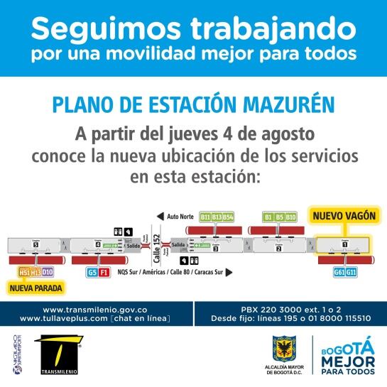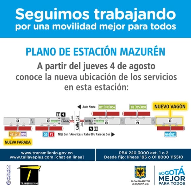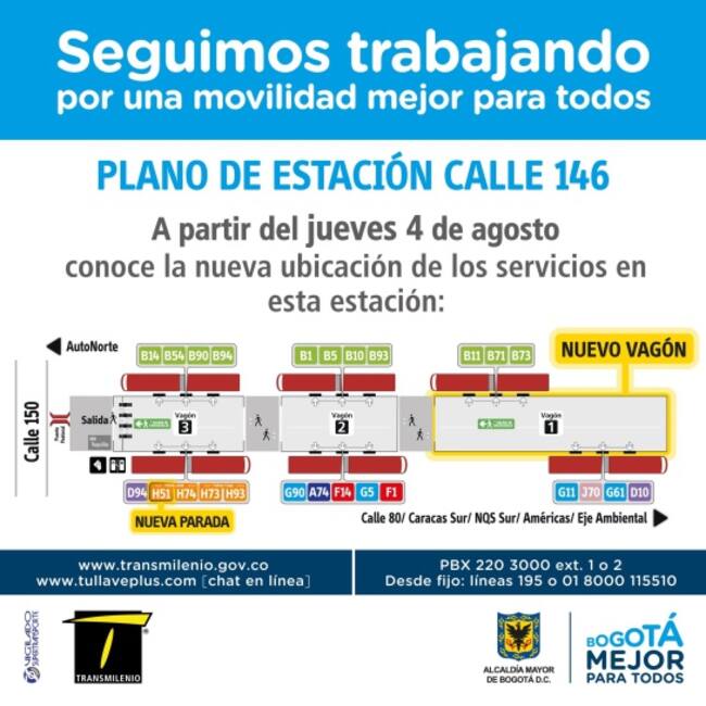 A partir de este jueves 4 de agosto comenzará a funcionar un vagón más en las estaciones de Transmilenio Mazurén y calle 146 en la Autopista Norte.