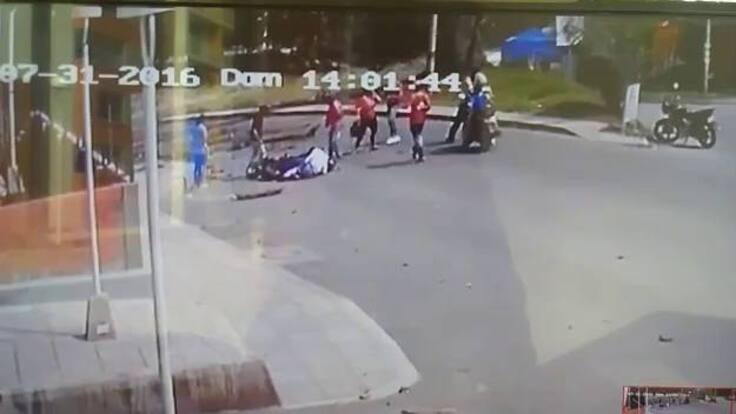 En el video se ve como cae una pesada rama sobre los motociclistas que llegaban a Piedecuesta.